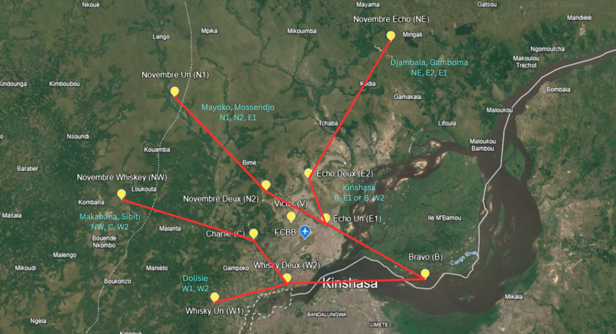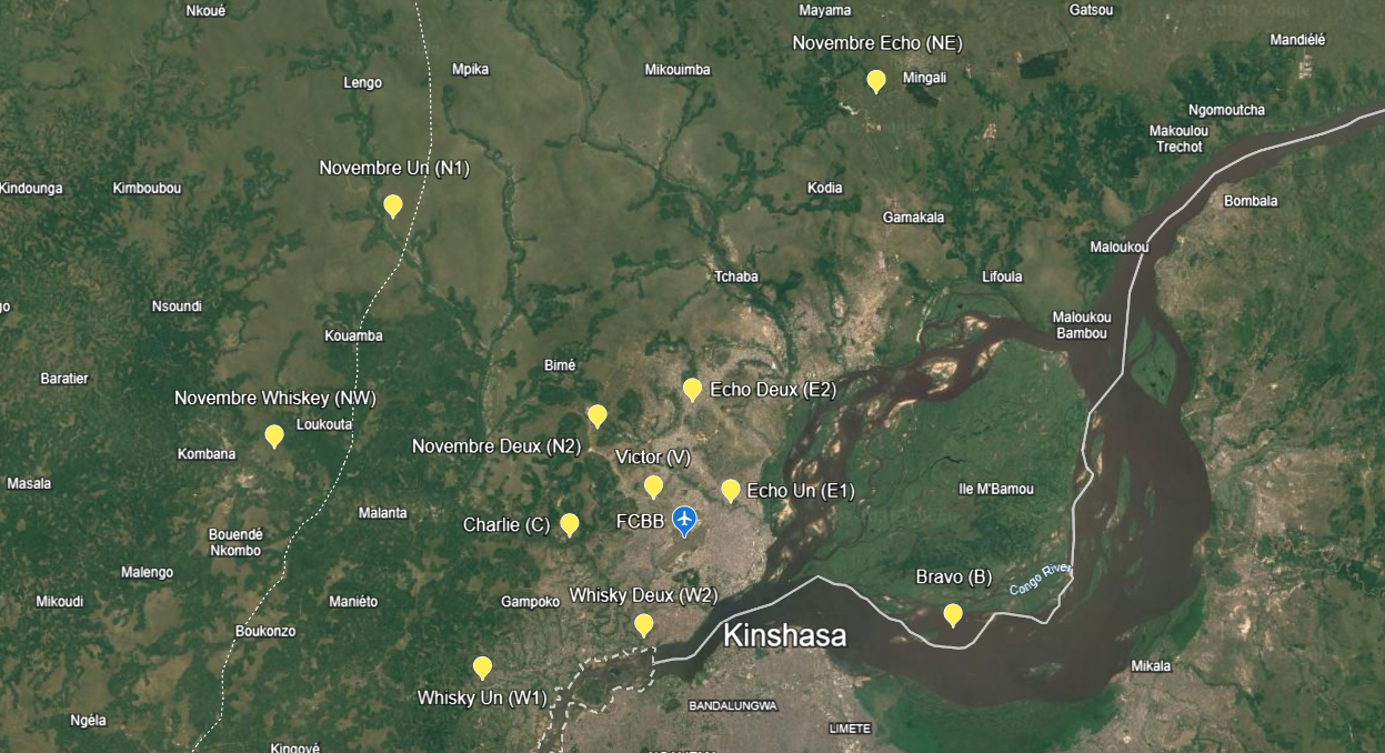 The responsibility of Tower at Brazzaville falls to the dedicated Tower ATS unit, Brazzaville Tower (FCBB_TWR) on 118.700. TWR will be responsible for the movements on the runway, as well as the responsibility of ensuring safety amongst VFR aircraft operating in the circuit or within the Brazzaville CTR from GND - 3000ft MSL.