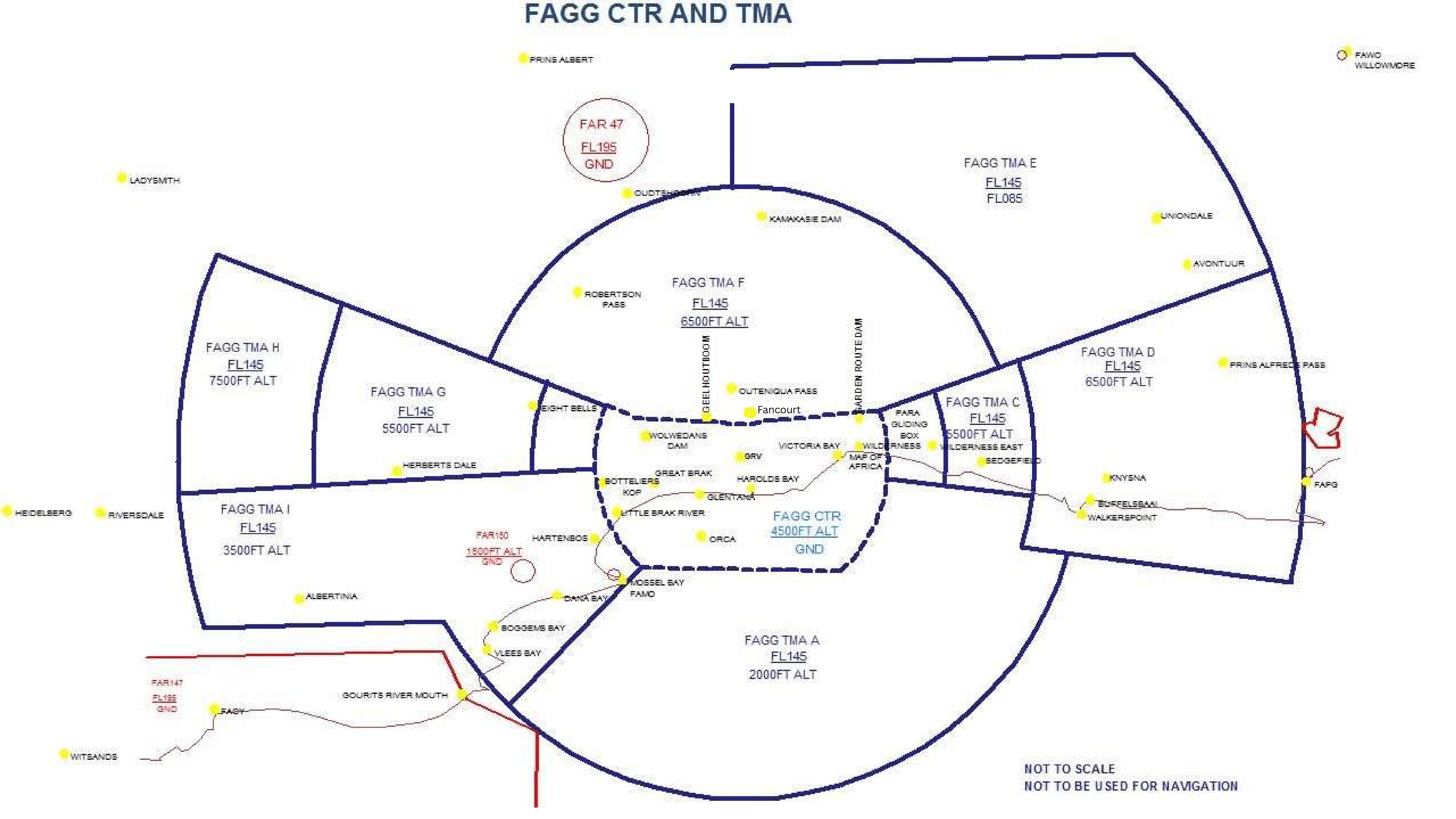 The responsibility of Tower at George falls to the dedicated Tower ATS unit, "George Tower" (FAGG_TWR) on 118.900. TWR will be responsible for the movements on the runway, as well as the responsibility of ensuring safety amongst VFR aircraft operating in the circuit or within the George CTR from GND - 4500ft MSL.