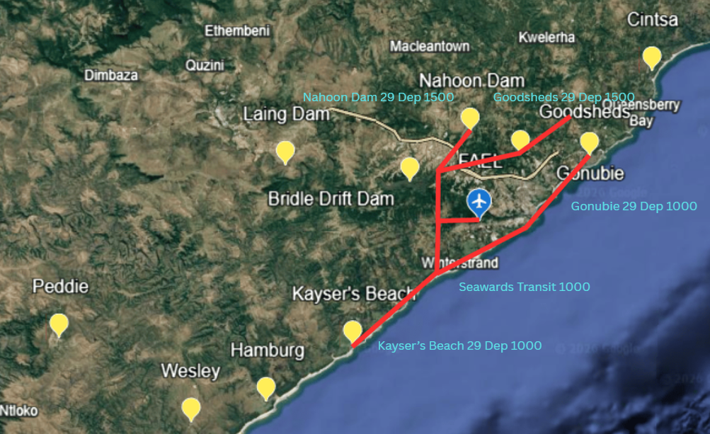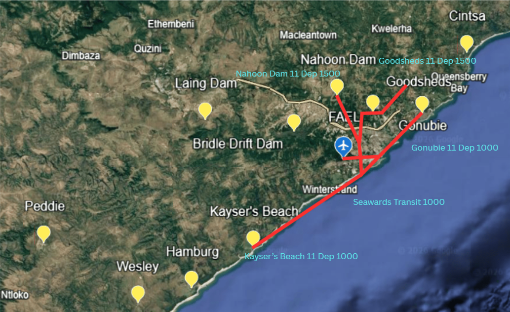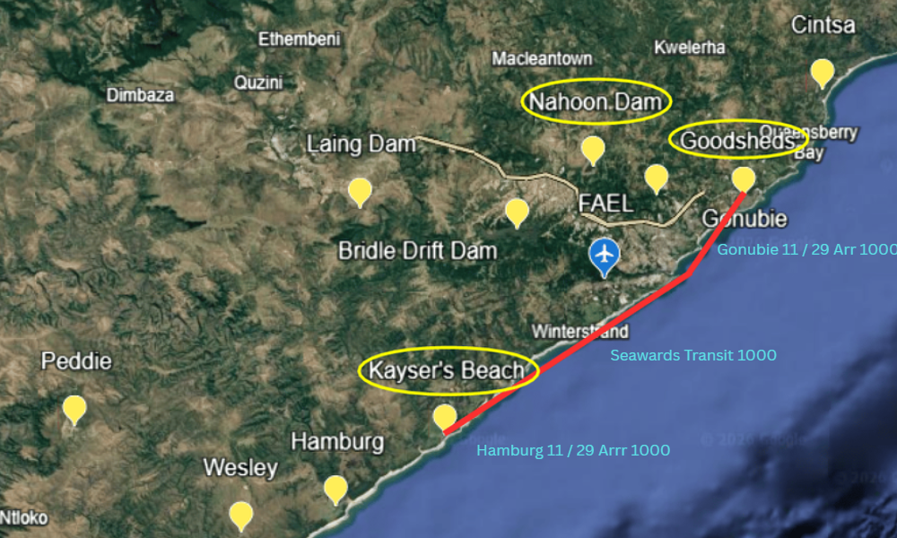 | Seawards Transit | Keysers Beach / Gonubie | 1000 ft |