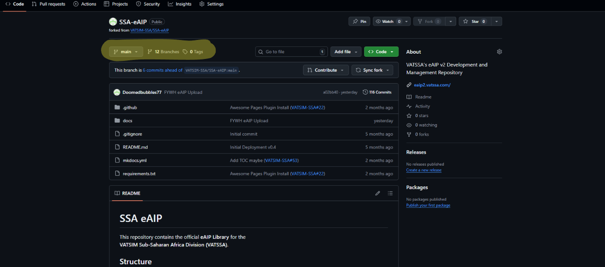 Now we are going to "fork" the eAIP. Forking allows us to edit our own copy of the eAIP without changing anything on the main eAIP.