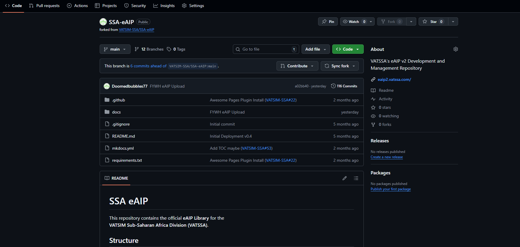 The VATSSA eAIP is an easy to use website hosted on Github. All files are formatted as MKDocs. MKDocs formatting can be tricky to learn at first. The best way to learn it by using our Aerodrome Formats page, which can be found here.