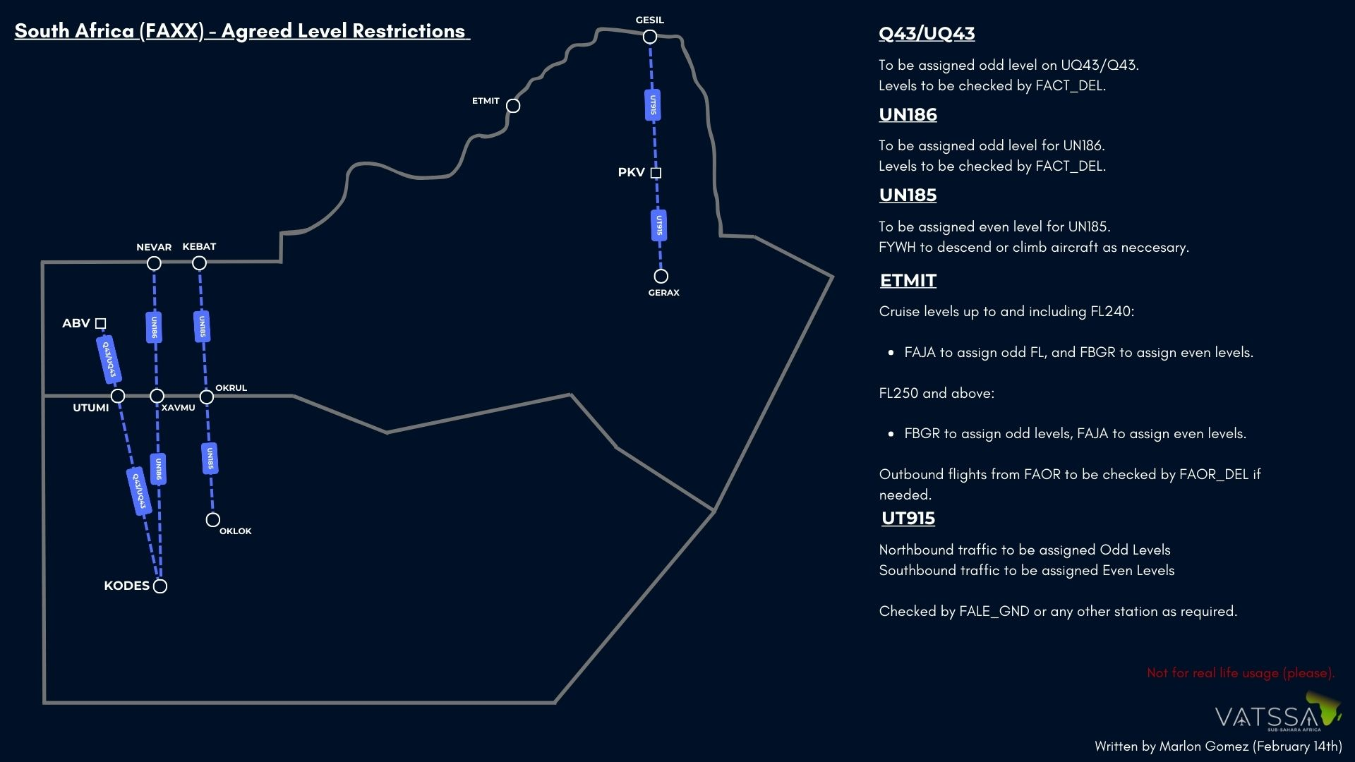 On contact with the first FACA unit (FACA_W) or (FACA_E), the controller will be the one to issue the arrival clearance into Cape Town. Controllers are to check the latest NOTAMs, aswell as the Cape Town TMA page to keep up to date with the latest STARs in use.