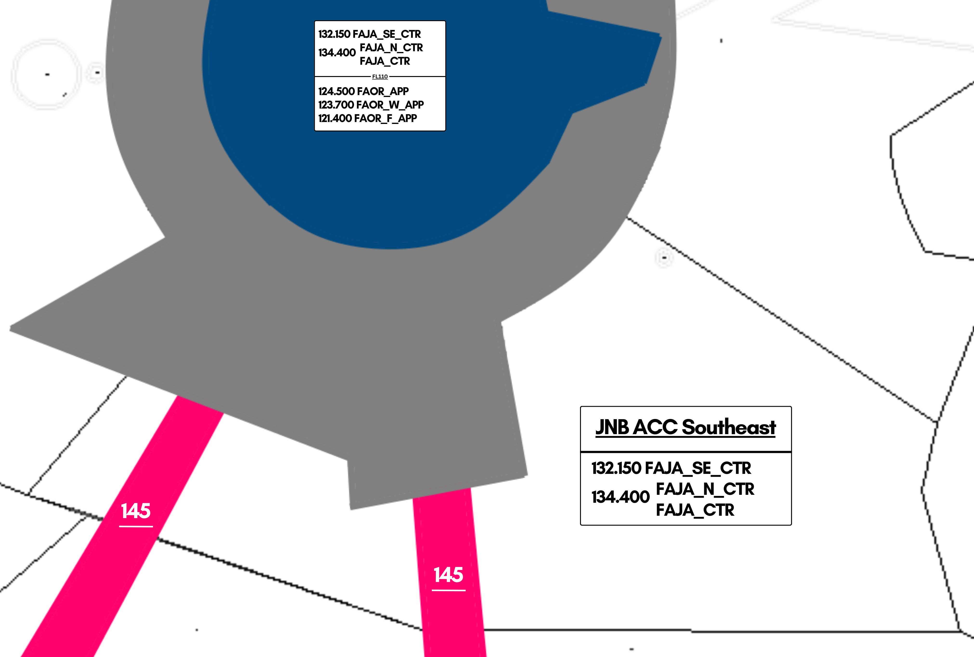 You will not be issuing arrival clearances for FAOR if an aircraft transfers over from another FAJA unit, i.e. a flight flying from FALE -> FAOR will have its arrival clearance issued by the sector covering the FAJA_E sector. As a result, you will only be clearing them inbound into the FAJA_SE sector at their level.