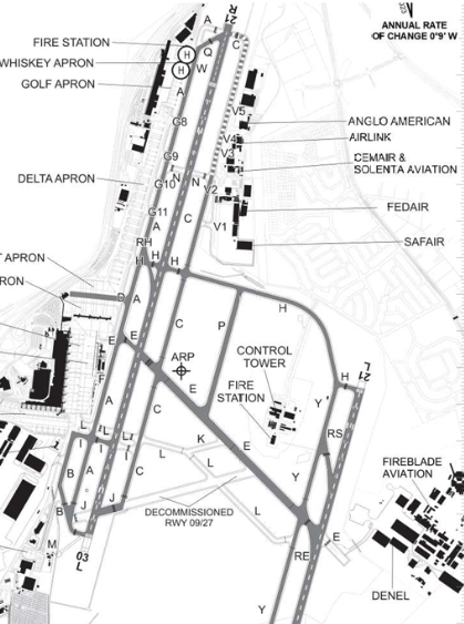 All routes operating in and out of Johannesburg O.R. Tambo are to comply strictly with the South African CAA Route Matrix: Aeronautical Information Management – ATNS Website